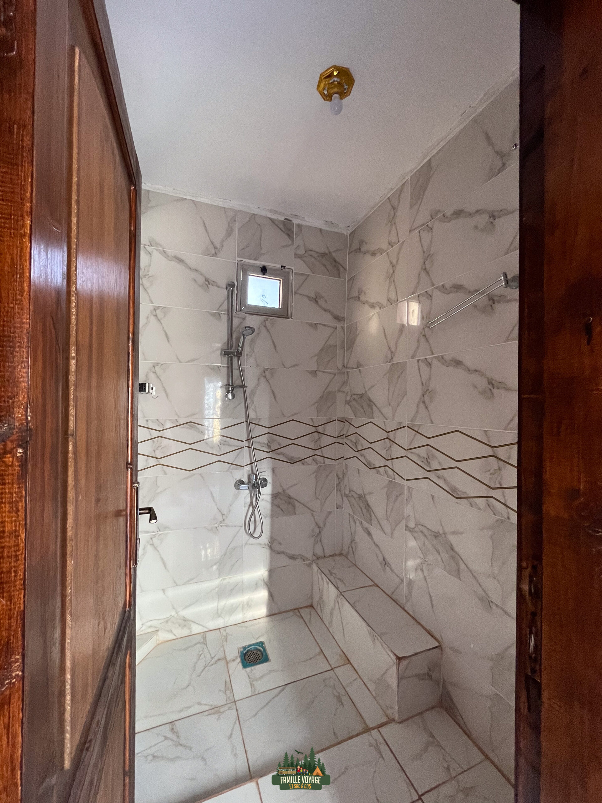 Les sanitaires sont communs, on y trouve quatre douches et quatre toilettes, tout est neufs et très propres sur les quatre jours que nous avons passé là-bas. Suivant l’heure de la journée, vous aurez de l’eau chaude ou pas, pour avoir de l’eau chaude, il faut y aller dans la soirée, cependant l’eau n’est pas vraiment froide non plus le matin. Dans les parties communes on y trouve également une grande piece à vivre qui est équipé de prise éléctrique, une cheminée, des instruments de musique mais aussi plusieurs coin salon qui servent aussi de restaurant. pour le soir et pour le petit déjeuner. A l’exterieur il y a aussi un coin ou l’on peut passer du temps autour d’un feu la nuit en écoutant de la musique tout en passant un bon moment.